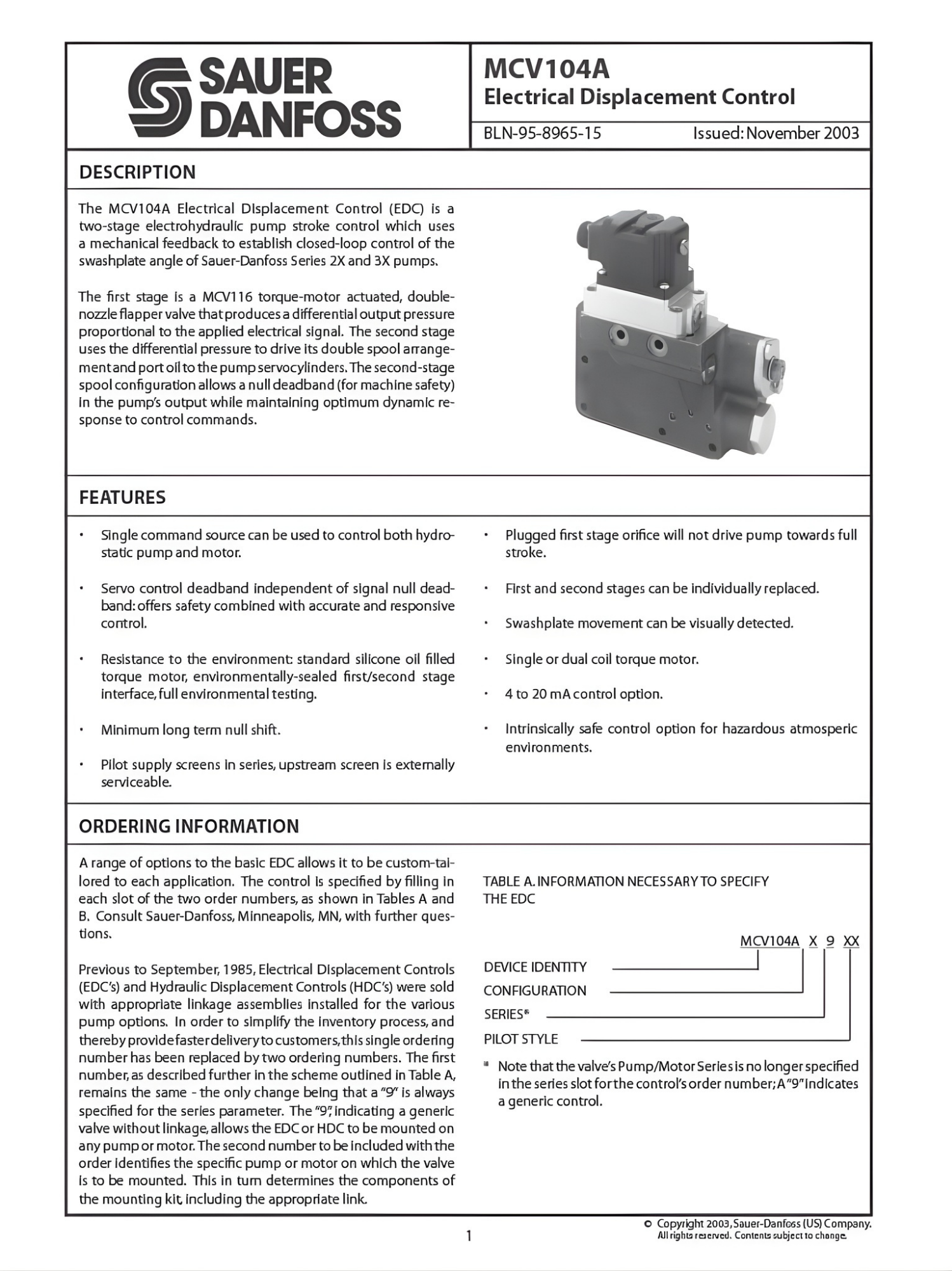 MCHXXX Control Handle Technical Information Manual